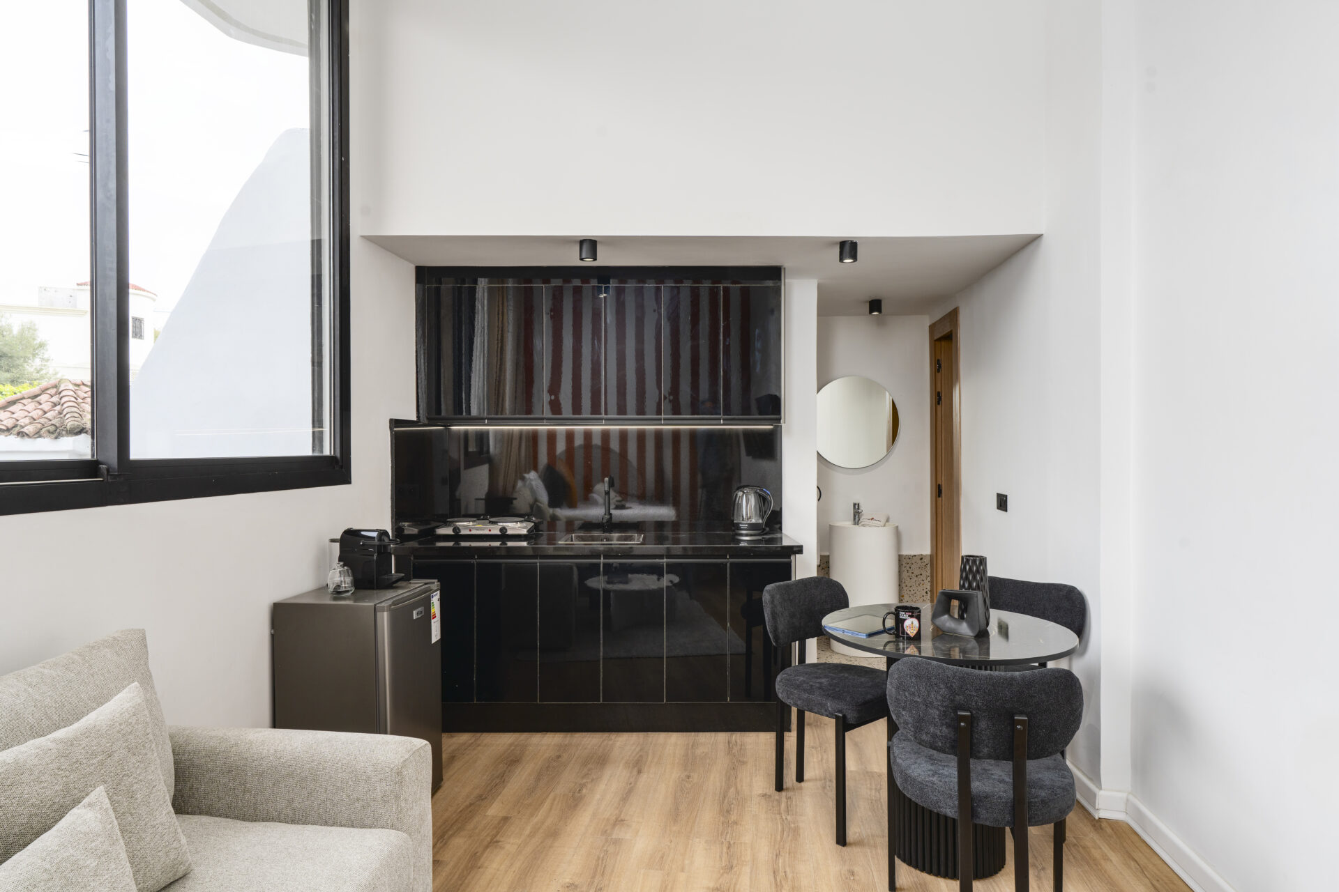 Situated in a quiet yet central neighborhood, this apart-hotel allows easy access to Casablanca’s main areas while offering a serene environment for rest and focus.